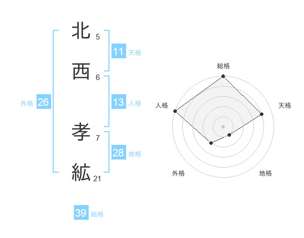 北西 孝絋さんを姓名の画数から五運を鑑定