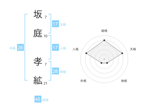 坂庭 孝絋さんの天格は17画の4点!