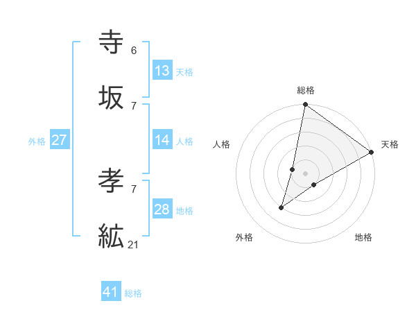 寺坂 孝絋さんの天格は13画の5点!