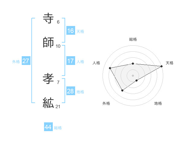寺師 孝絋さんを姓名の画数から五運を鑑定