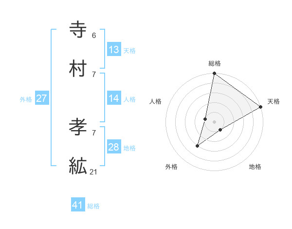 寺村 孝絋さんの総格は41画の5点!