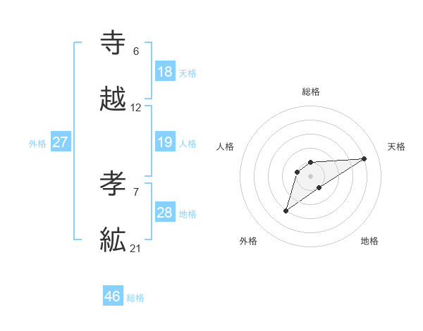 寺越 孝絋さんの総格は46画の1点!