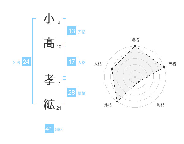 小髙 孝絋さんを姓名の画数から五運を鑑定