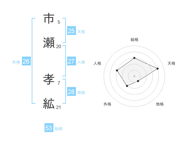 市瀬 孝絋さんの総格は53画の3点!