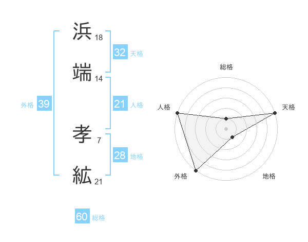 浜端 孝絋さんの外格は39画の5点!