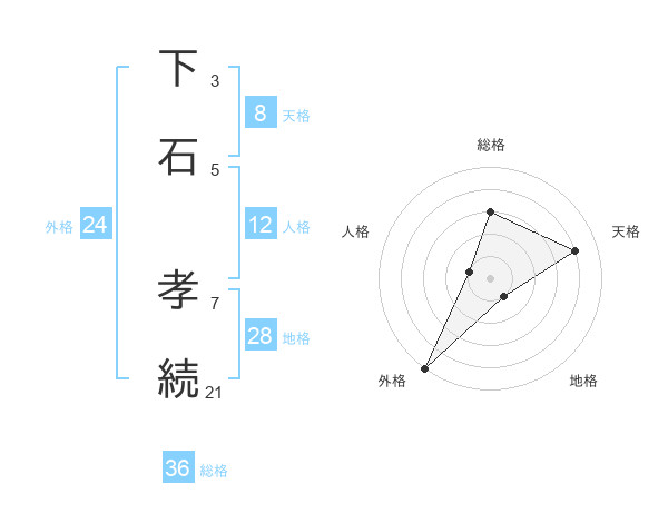 下石 孝続さんの天格は8画の4点!