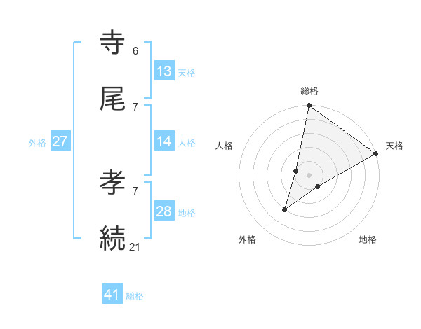 寺尾 孝続さんの総格は41画の5点!
