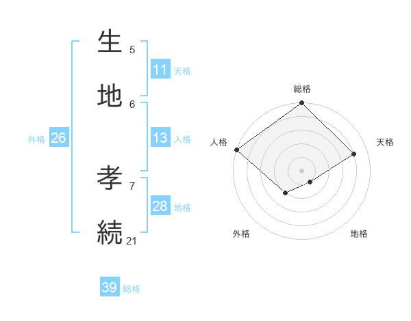 生地 孝続さんの総格は39画の5点!