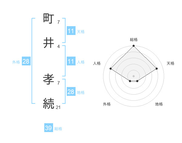 町井 孝続さんの総格は39画の5点!