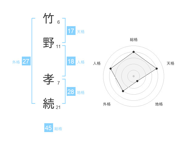 竹野 孝続さんの総格は45画の4点!