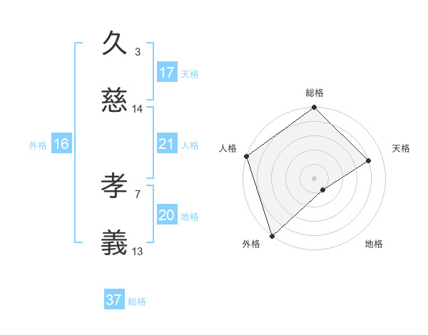 久慈 孝義さんを姓名の画数から五運を鑑定