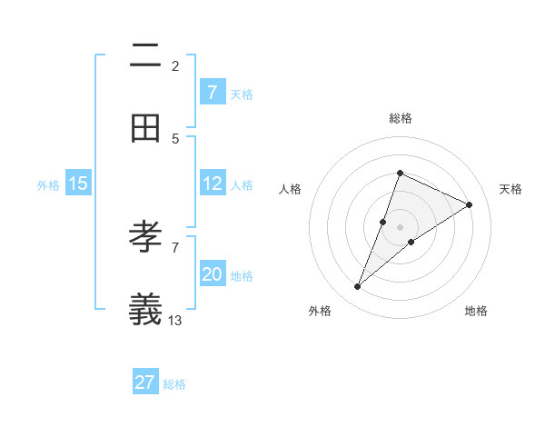 家系が持つ宿命的な運勢を表します。祖先から受け継いだ苗字ですので自分の力が及びません。家柄を象徴します。