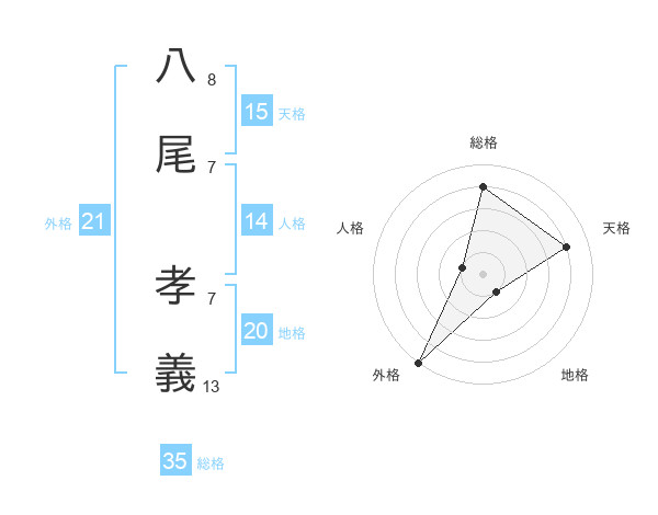 八尾 孝義さんの総格は35画の4点!