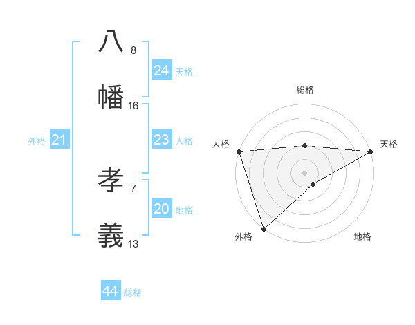 八幡 孝義さんを姓名の画数から五運を鑑定