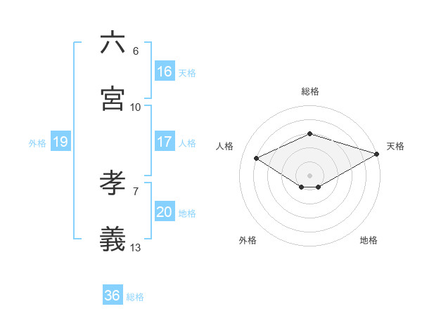 六宮 孝義さんの総格は36画の3点!
