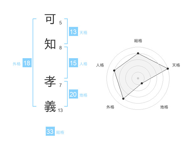 可知 孝義さんの天格は13画の5点!