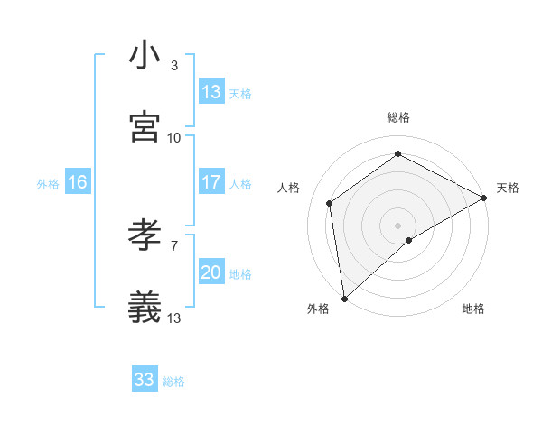 小宮 孝義さんを姓名の画数から五運を鑑定