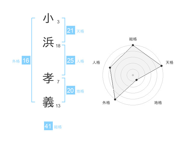 小浜 孝義さんの天格は21画の5点!