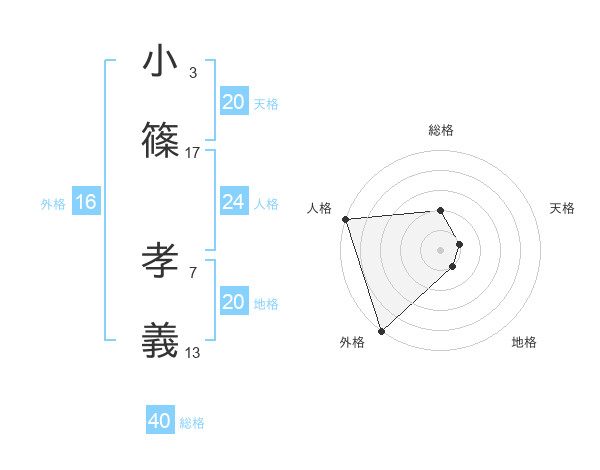 小篠 孝義さんの天格は20画の1点!