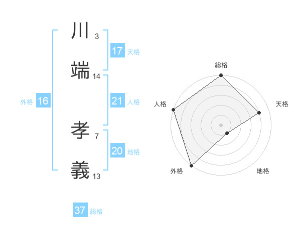 川端 孝義さんの総格は37画の5点!