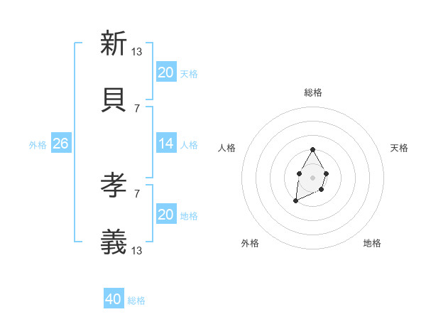 新貝 孝義さんを姓名の画数から五運を鑑定