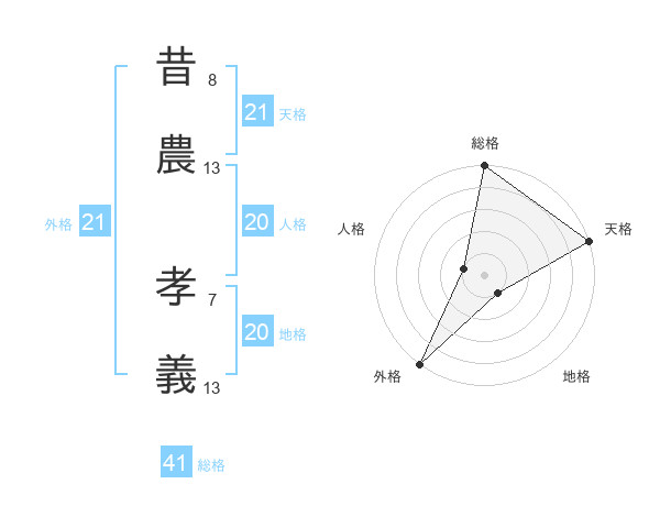 昔農 孝義さんを姓名の画数から五運を鑑定