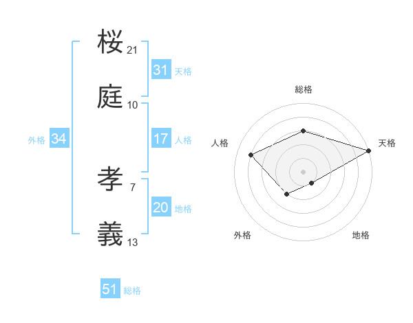 桜庭 孝義さんの総格は51画の3点!