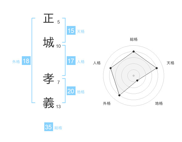 正城 孝義さんの総格は35画の4点!