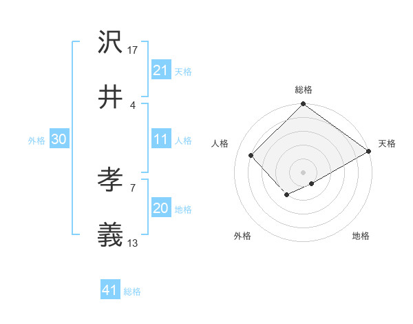沢井 孝義さんの天格は21画の5点!