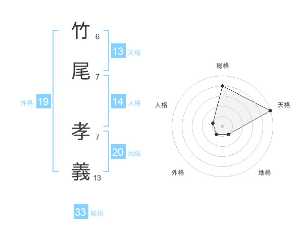 竹尾 孝義さんを姓名の画数から五運を鑑定