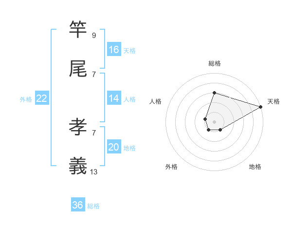 竿尾 孝義さんを姓名の画数から五運を鑑定