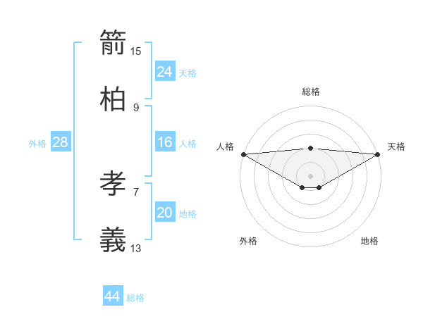 箭柏 孝義さんを姓名の画数から五運を鑑定