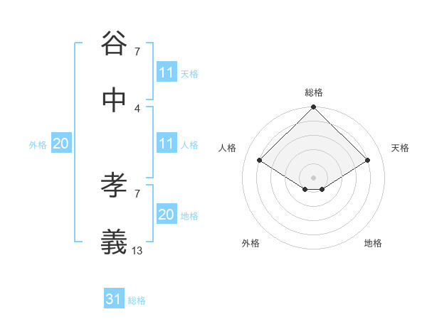 谷中 孝義さんを姓名の画数から五運を鑑定