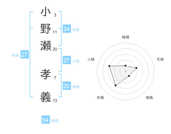 小野瀬 孝義さんを姓名の画数から五運を鑑定