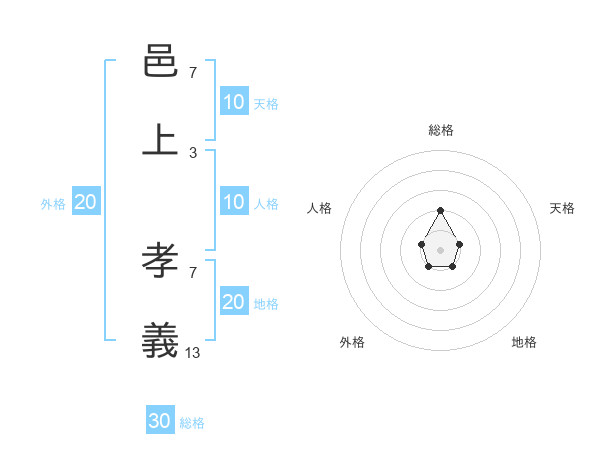 邑上 孝義さんを姓名の画数から五運を鑑定