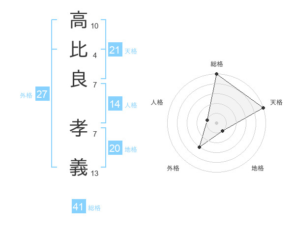 高比良 孝義さんの天格は21画の5点!