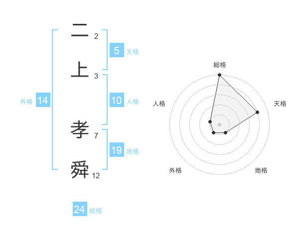 二上 孝舜さんを姓名の画数から五運を鑑定