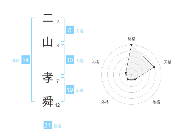 二山 孝舜さんを姓名の画数から五運を鑑定