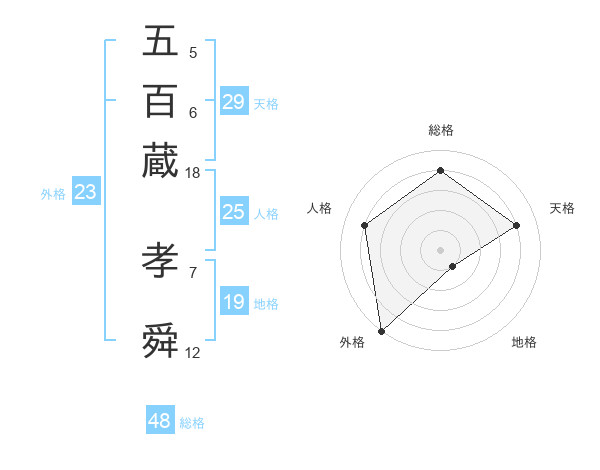 五百蔵 孝舜さんの天格は29画の4点!