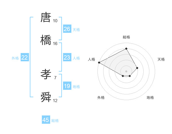 唐橋 孝舜さんの総格は45画の4点!