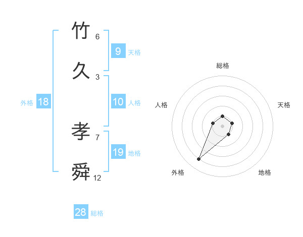 竹久 孝舜さんを姓名の画数から五運を鑑定