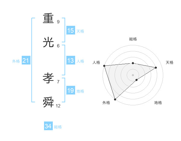 重光 孝舜さんを姓名の画数から五運を鑑定