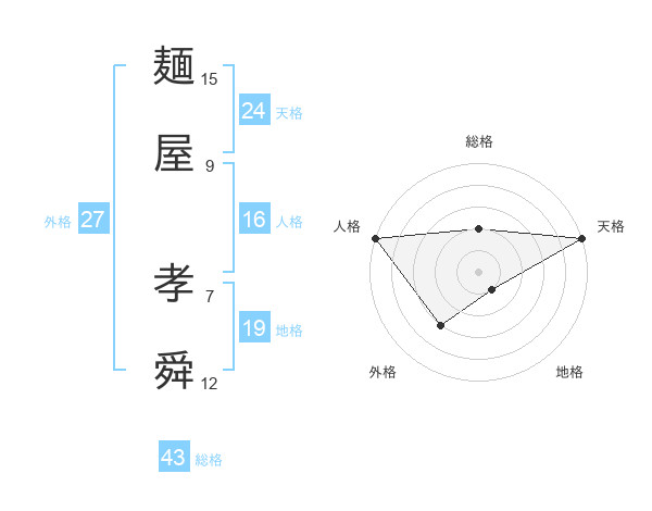 麺屋 孝舜さんを姓名の画数から五運を鑑定
