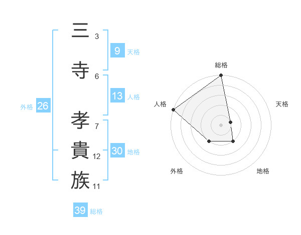 三寺 孝貴族さんの総格は39画の5点!