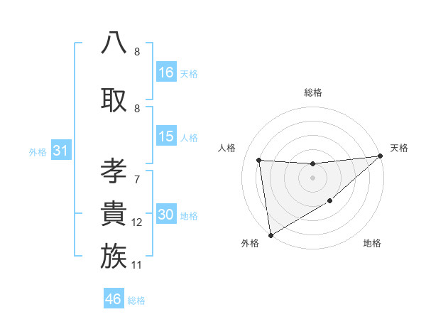 八取 孝貴族さんを姓名の画数から五運を鑑定