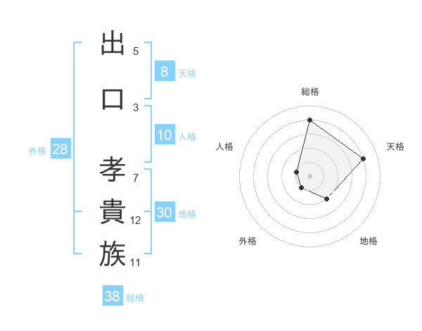 出口 孝貴族さんの総格は38画の4点!
