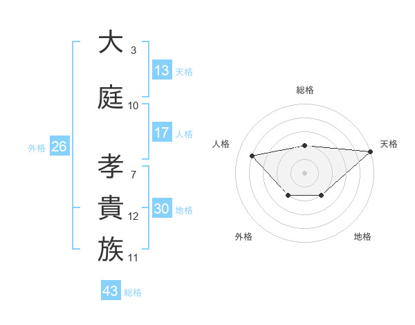 大庭 孝貴族さんを姓名の画数から五運を鑑定