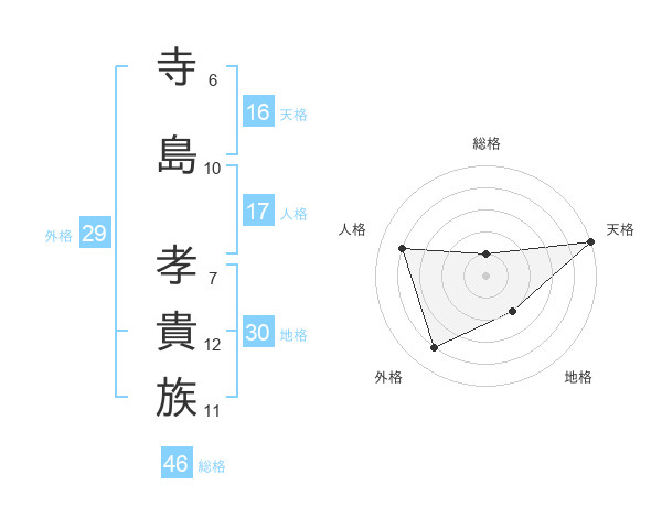 寺島 孝貴族さんの天格は16画の5点!
