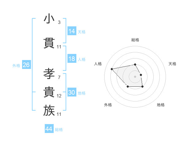 小貫 孝貴族さんを姓名の画数から五運を鑑定