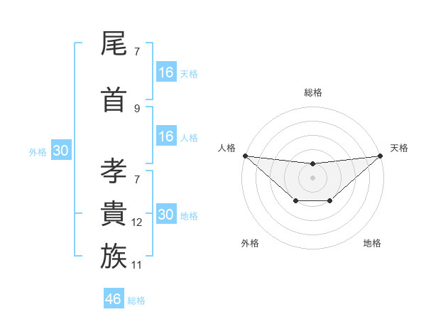 尾首 孝貴族さんの総格は46画の1点!